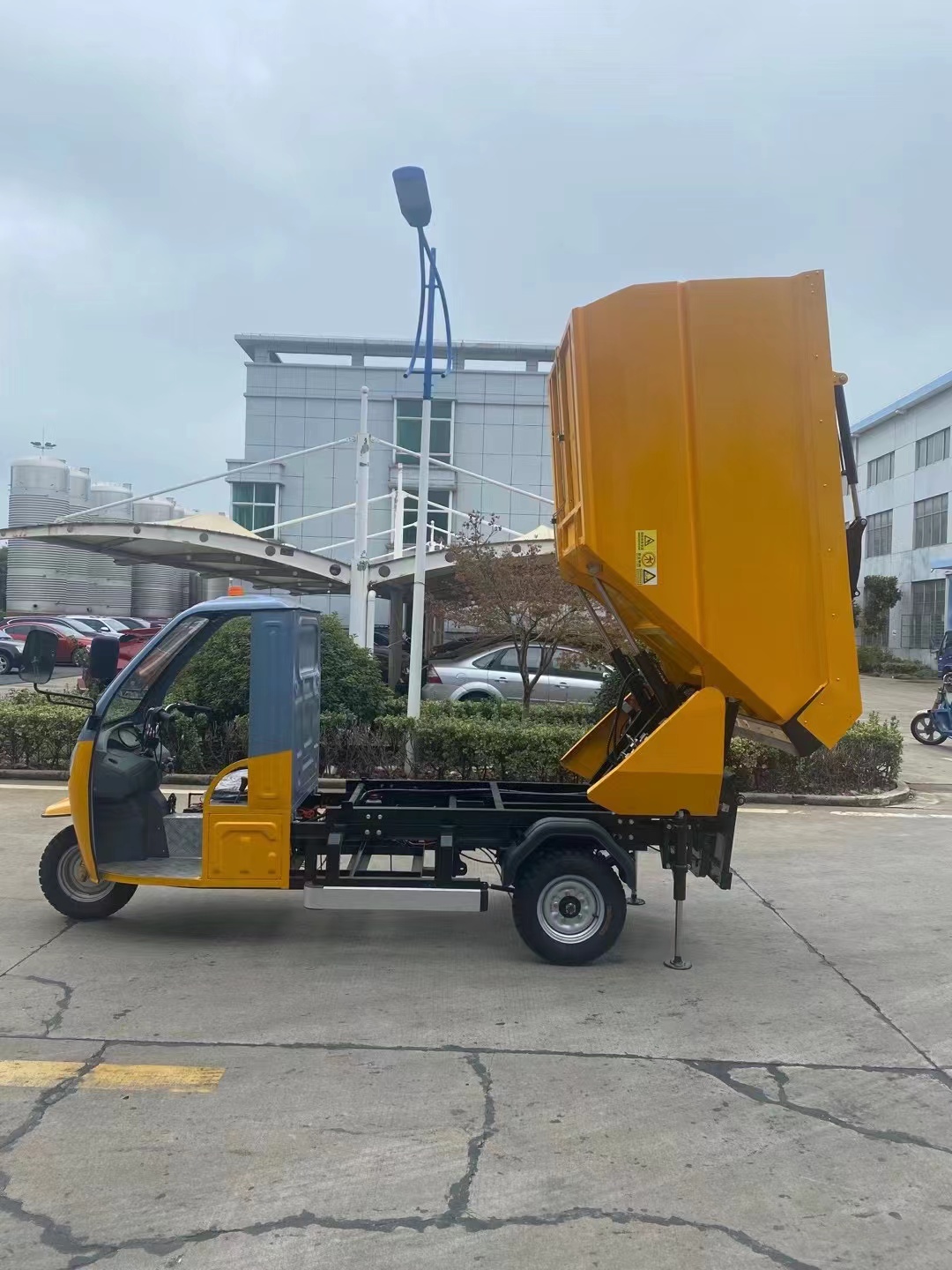 午夜影院网站三輪後上桶清運車、箱體容積有2.4立方和3.2立方配置可選,工作時占道麵積小,拋灑滴漏少,後置壓縮裝置。