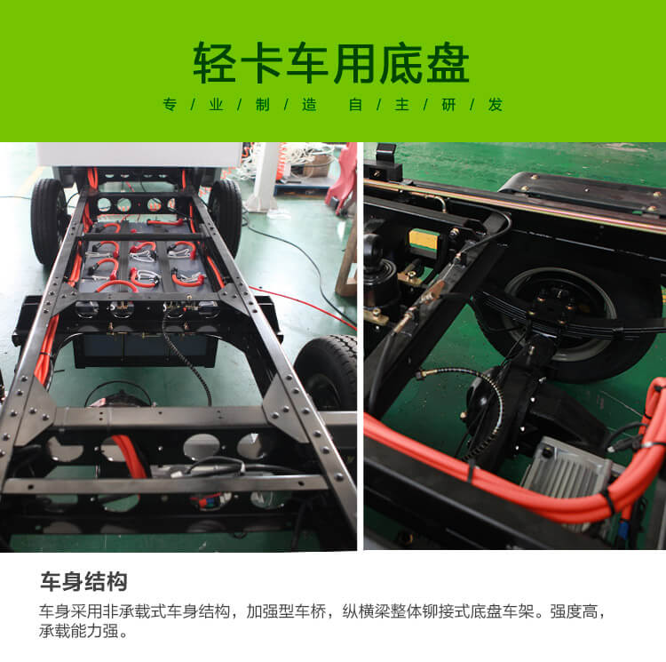 l 底盤采用車架縱橫梁整體鉚接式輕卡車用底盤設計,選用卡車專用鋼板,底盤整體強度高,承載能力強。